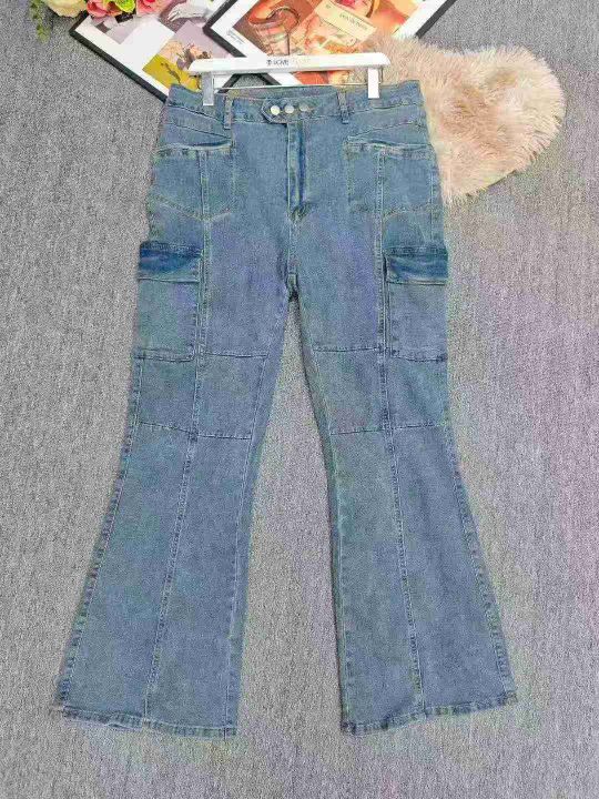 7.8清工厂回收378条外贸热卖时尚工装宽松大版女士牛仔...