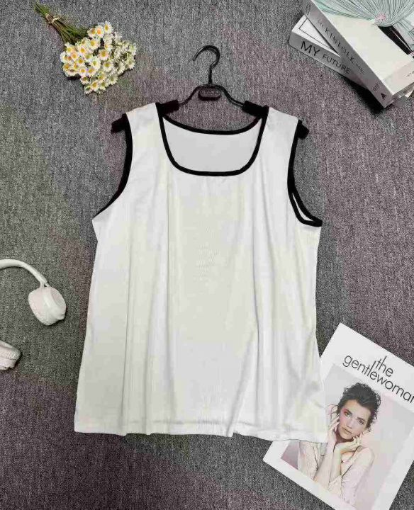 大码辣妹风无袖法式方领背心吊带小衫,整款两色,高弹...