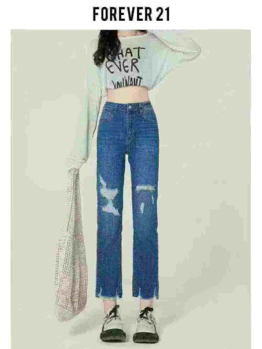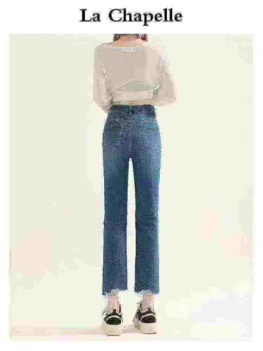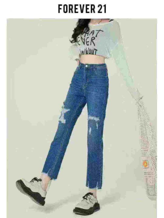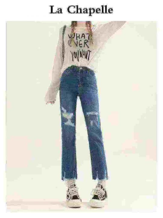 ☕️高弹力设计感破洞牛仔裤女夏季新款显瘦高腰直筒九...