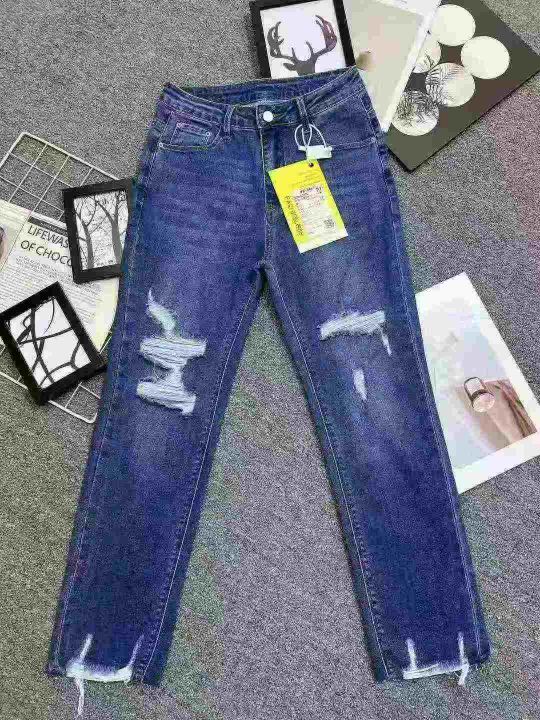 ☕️高弹力设计感破洞牛仔裤女夏季新款显瘦高腰直筒九分烟管裤140条全清12.8元,码数25-29,独立包装[庆祝][庆祝][庆祝]