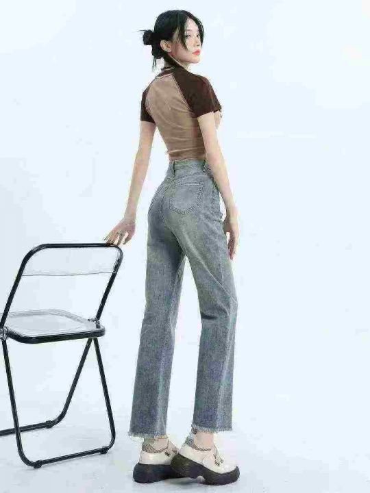 ☕️高弹力直筒牛仔裤新款今年流行爆款高腰显瘦复古毛...