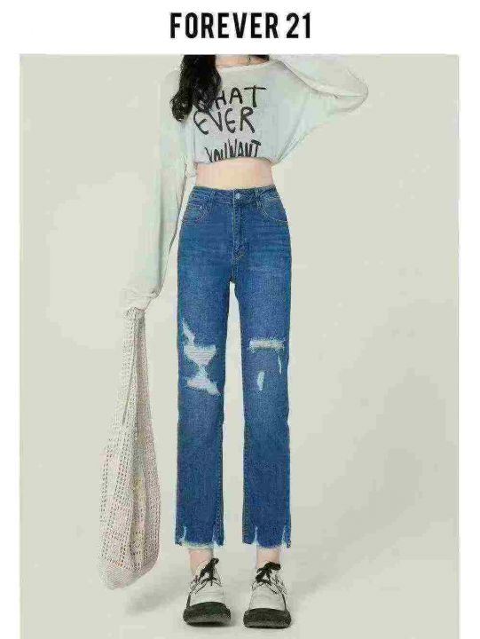 ☕️高弹力设计感破洞牛仔裤女夏季新款显瘦高腰直筒九...