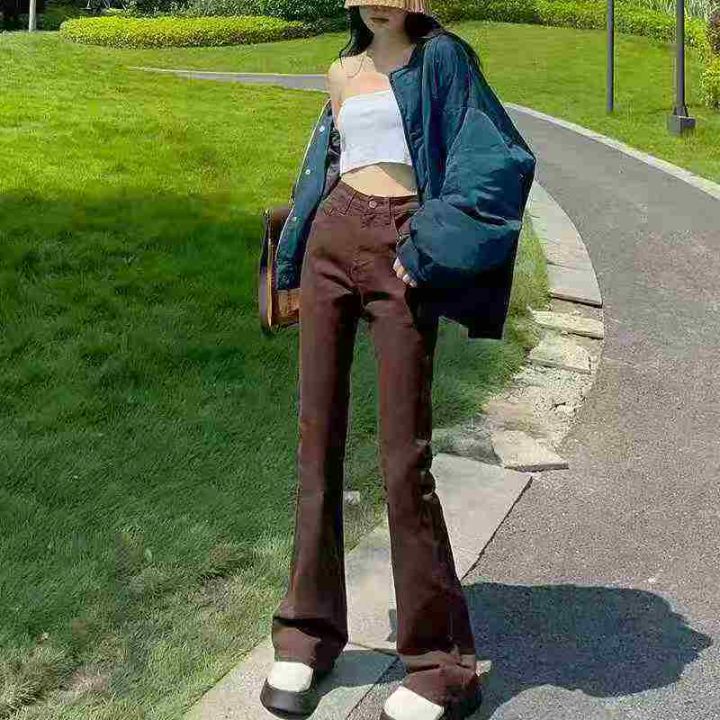 ☕️高弹力棕色微喇叭牛仔裤女秋季新款高腰弹力修身显...