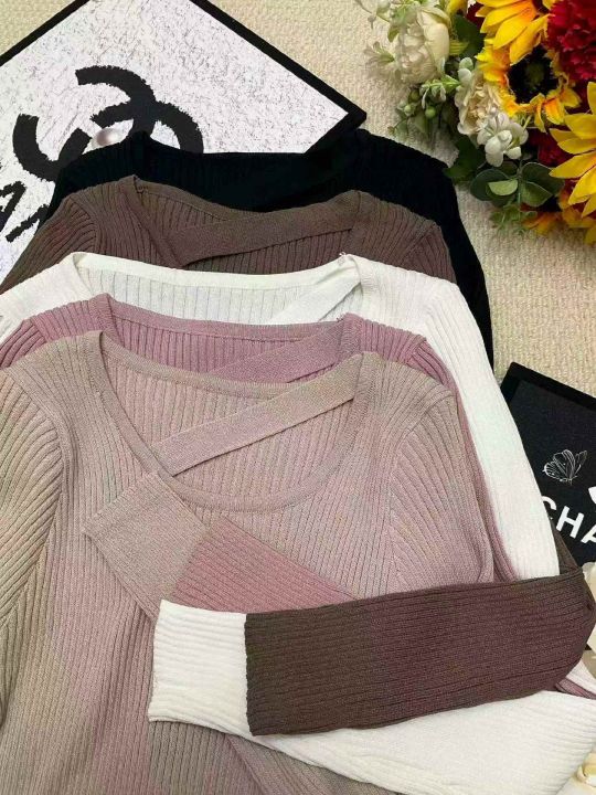 春秋新款网红设计感小众不规则洋气弹力修身显瘦坑条包芯纱套头毛衣,独立包装,均码面料软糯舒适,3800件左右,全清6.9元超低价秒杀!分货加一!