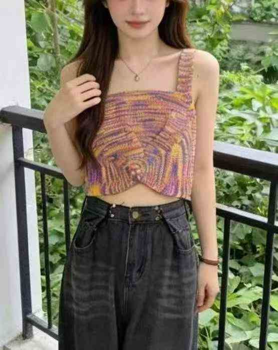 夏季新款辣妹纯欲撞色彩虹条纹设计款针织吊带背心,独...