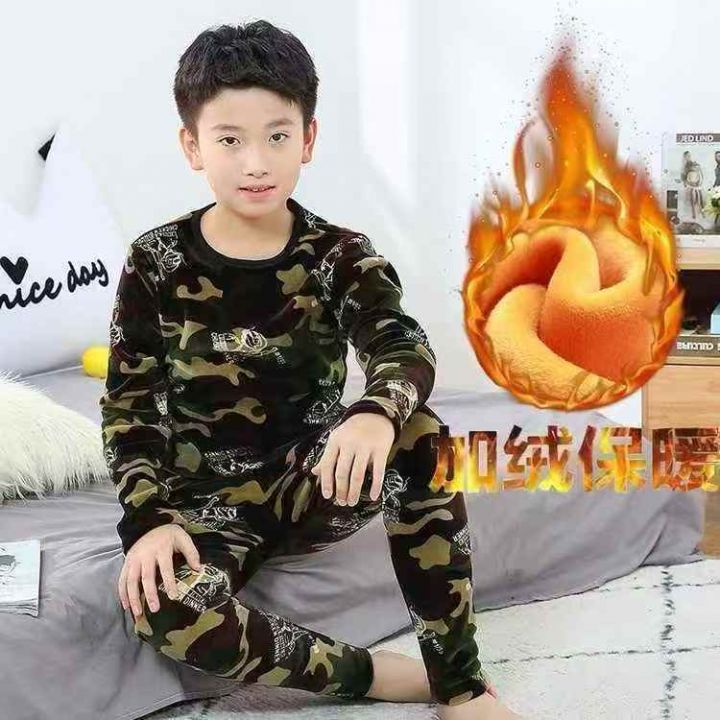 儿童保暖内衣加绒加厚套装双面银狐绒男童新款秋衣秋裤...