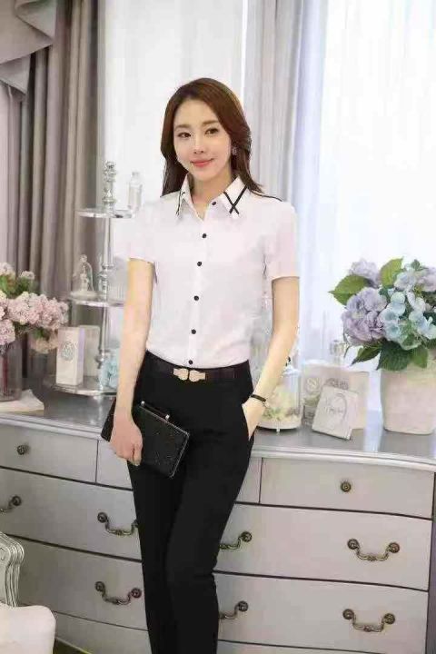 930职件业装白衬衫女2025夏装韩版短袖上衣女修身不紧身工作服,独立包装带...