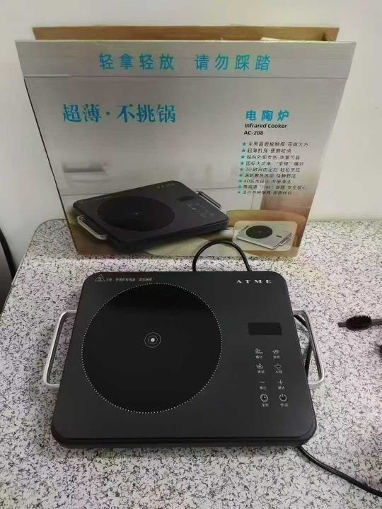 ATME超薄电陶炉 采用全黑晶面板触摸 国标大功率2200W 3小时自由定时 轻松烹饪 带高温hot提醒 4D防水设计 双层包装现货230台
