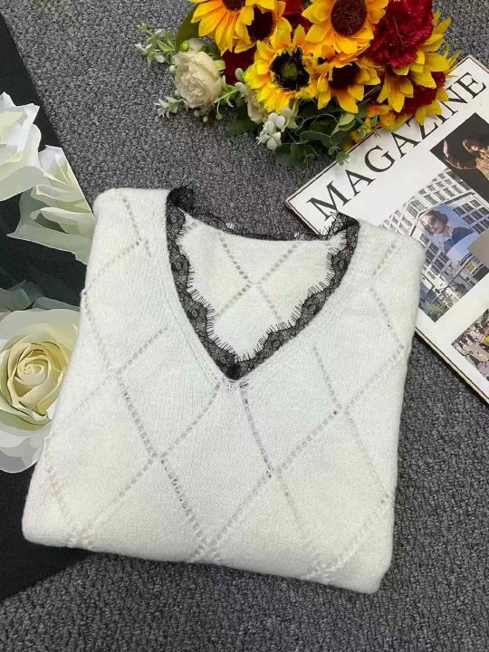 春秋新款外贸原单美式宽松慵懒风拼接设计款粗针套头毛...