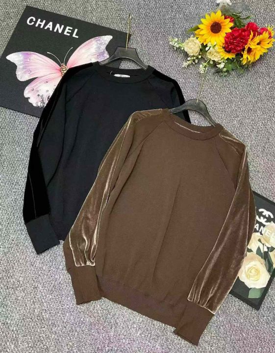 春秋新款轻熟女装宽松AB面针织拼金丝绒长袖上衣,独立包装,均码面料软糯舒适,200件,全清5.9元超低价秒杀!