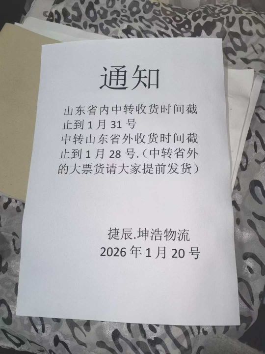 各位老板您好!这是部分物流公司停运吋间,物流车子紧张,请提前报货,以免耽误货物运输[抱拳][抱拳][抱拳]