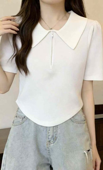 夏季新款韩系靓妹女装正肩POLO领撞色设计感拉链显瘦针织T桖,独立包装,均码年龄柔软舒适弹力大,1620件,全清6.9元超低价秒杀!分货加一!
