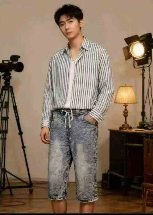 男女同款复古蓝高弹力洗水棉松紧腰牛仔中裤,独立包装,码数M--2XL码,400件左右,全清5.8元超低价秒杀!分货加一!