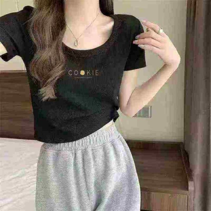 精梳螺纹正肩短袖T恤女甜辣风修身短款辣妹上衣,独立包装,码数2-6,弹力大,数量1227件,分货加1,货号119#28