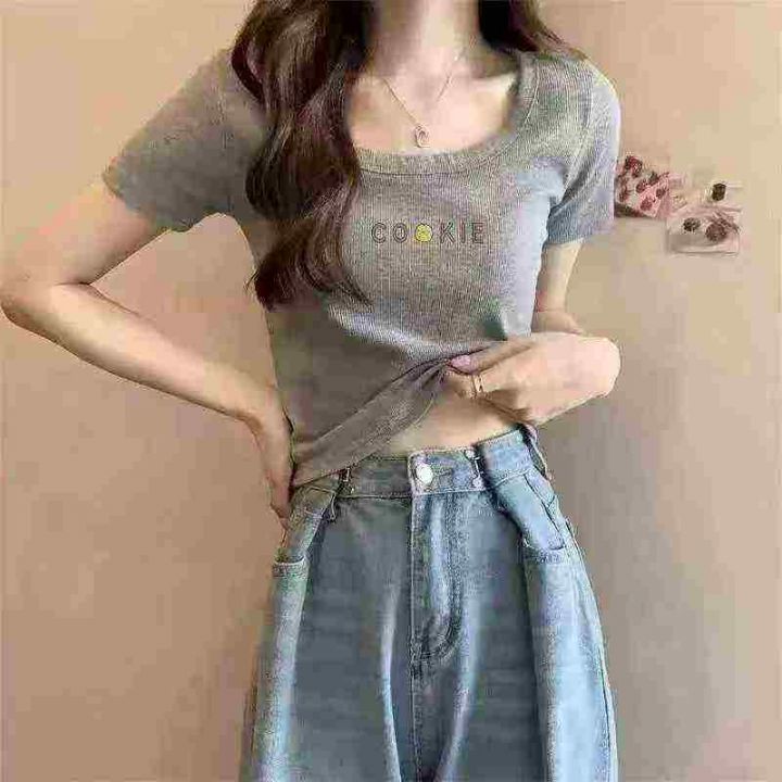 全清价6.5精梳螺纹正肩短袖T恤女甜辣风修身短款辣妹上...