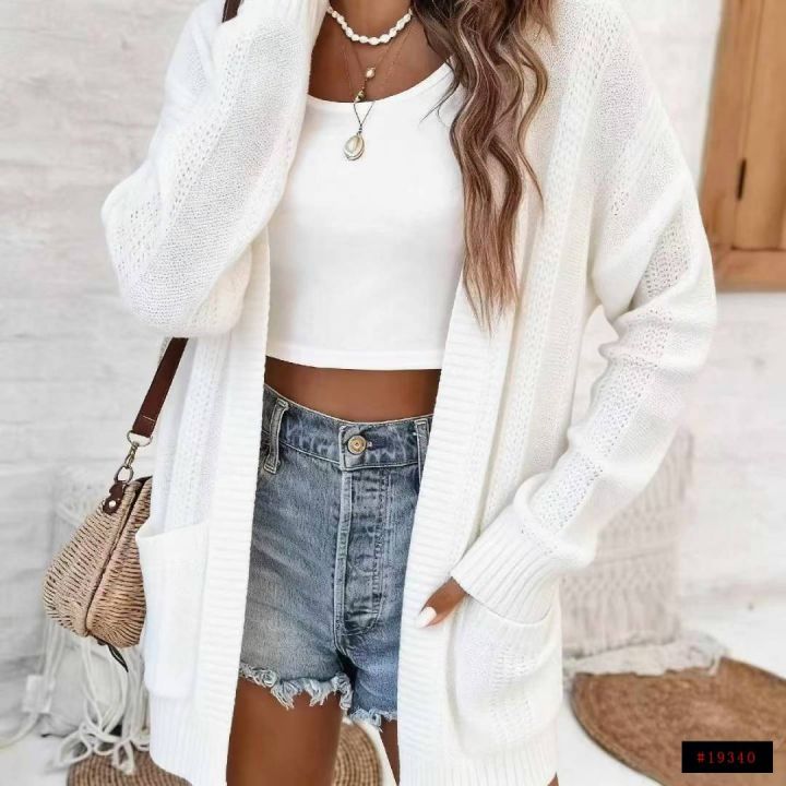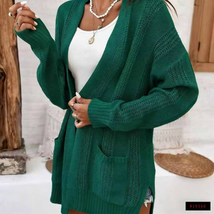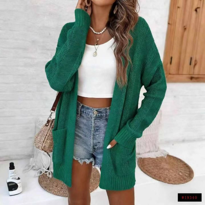 春秋新款外贸原单美式复古宽松粗针口袋毛衣开衫,独立...