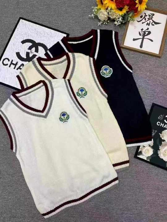 春秋新款韩系宽松百搭学院风刺绣小标针织毛衣马甲,独...