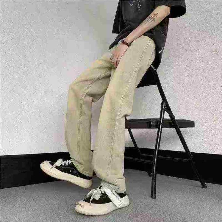男士水洗黄泥色牛仔裤男款复古高街vibe宽松直筒阔腿裤...