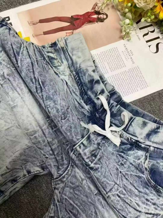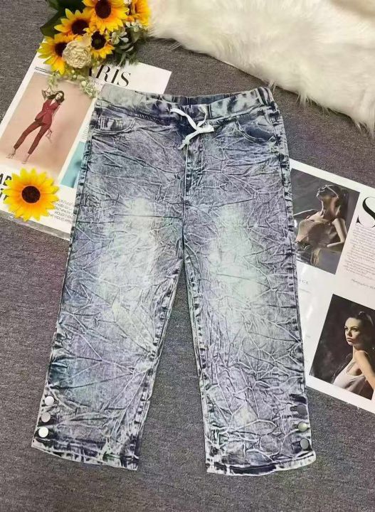 男女同款复古蓝高弹力洗水棉松紧腰牛仔中裤,独立包装,码数M--2XL码,400件左右,全清5.8元超低价秒杀!分货加一!