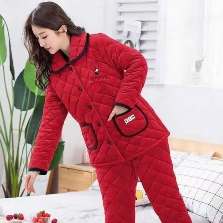 睡衣女冬季三层加厚夹棉珊瑚绒睡衣加绒法兰绒保暖棉袄家居服套装,数量28套,码数M-2XL,独立包装,货品干净厚实。
