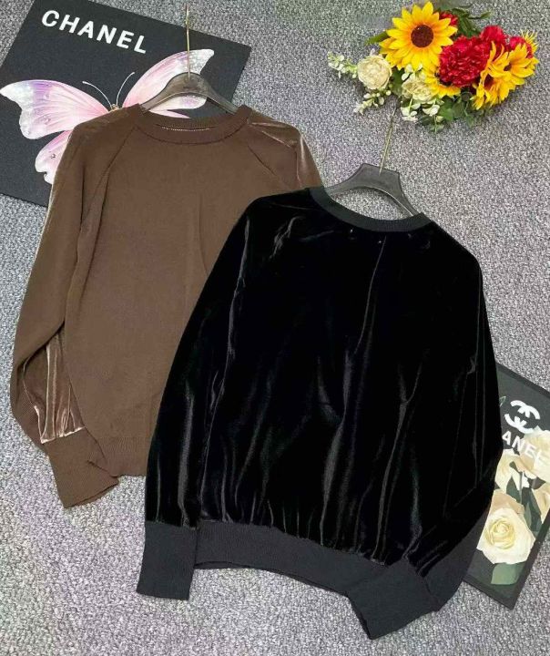 春秋新款轻熟女装宽松AB面针织拼金丝绒长袖上衣,独立包装,均码面料软糯舒适,200件,全清5.9元超低价秒杀!
