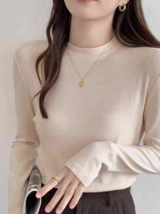 秋冬新款时尚净版简约半高领保暖德绒打底大码宽松慵懒风长袖t恤,独立包装...