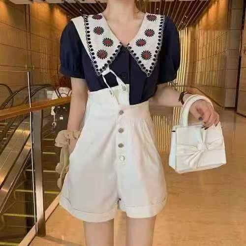☕️法式设计感绣花娃娃领泡泡袖小众宽松短袖衬衫女1810件全清8.8元,分货9...
