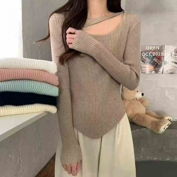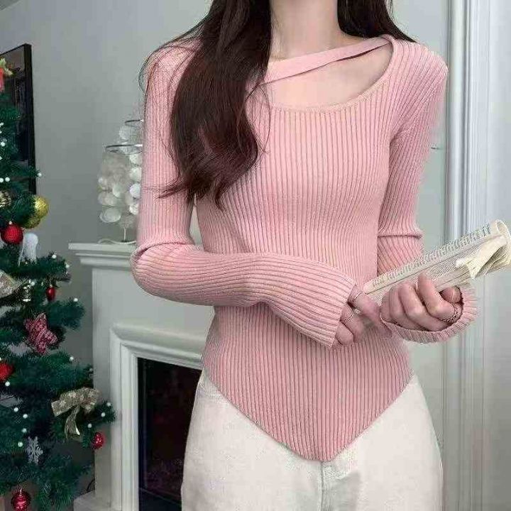 春秋新款网红设计感小众不规则洋气弹力修身显瘦坑条包芯纱套头毛衣,独立包装,均码面料软糯舒适,3800件左右,全清6.9元超低价秒杀!分货加一!