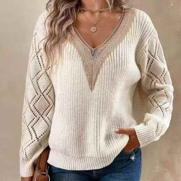 秋冬新款外贸原单美式宽松慵懒风V领粗针套头毛衣,独...