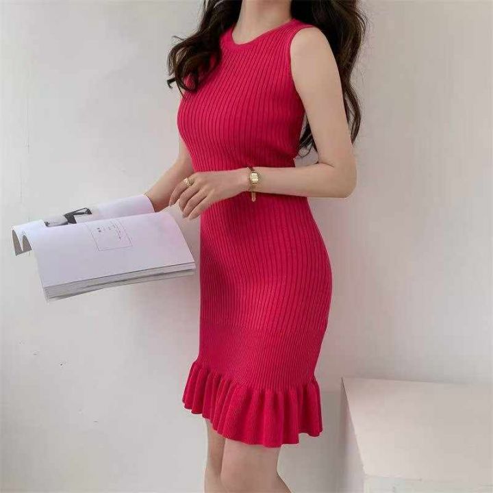 春夏季新款外贸原单美式复古坑条包芯纱荷叶边针织背心连衣裙,独立包装,码数S-XL码,352件,全清5.9元超低价秒杀!分货加一!