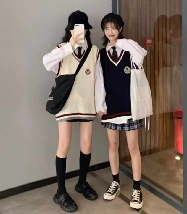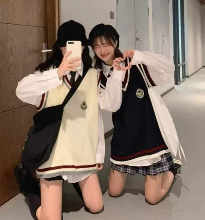 春秋新款韩系宽松百搭学院风刺绣小标针织毛衣马甲,独...