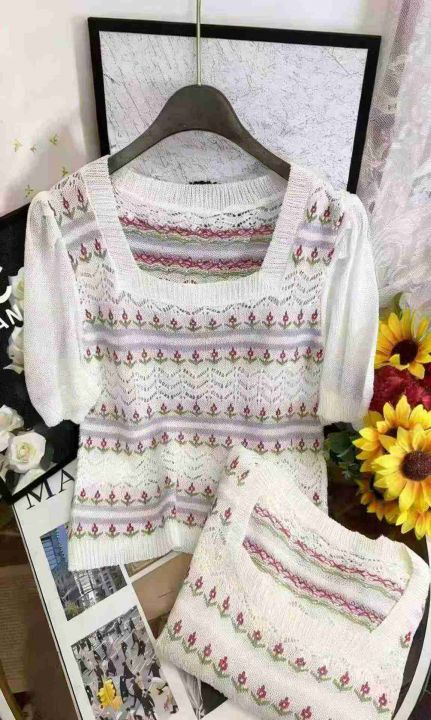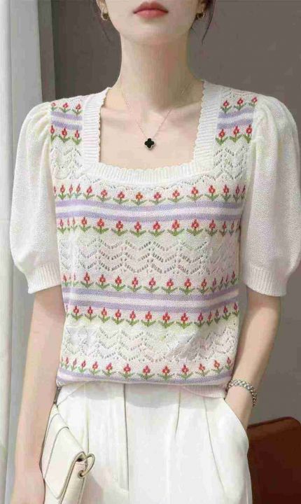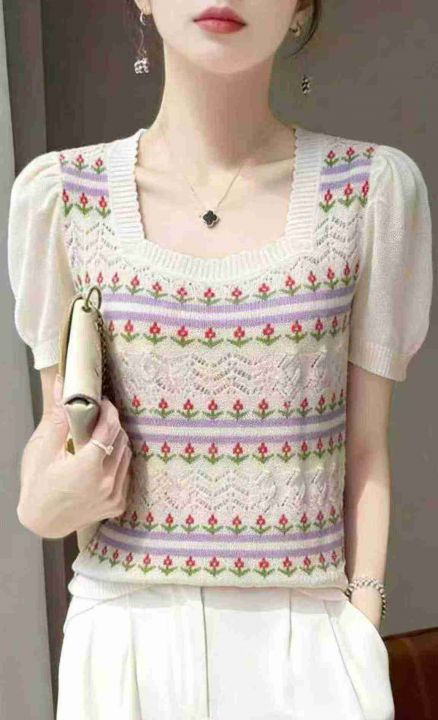 夏季新款复古碎花镂空方领法式大码正肩泡泡针织短袖小衫,独立包装,均码面料柔软舒适,377件,全清6.9元超低价秒杀!分货加一!