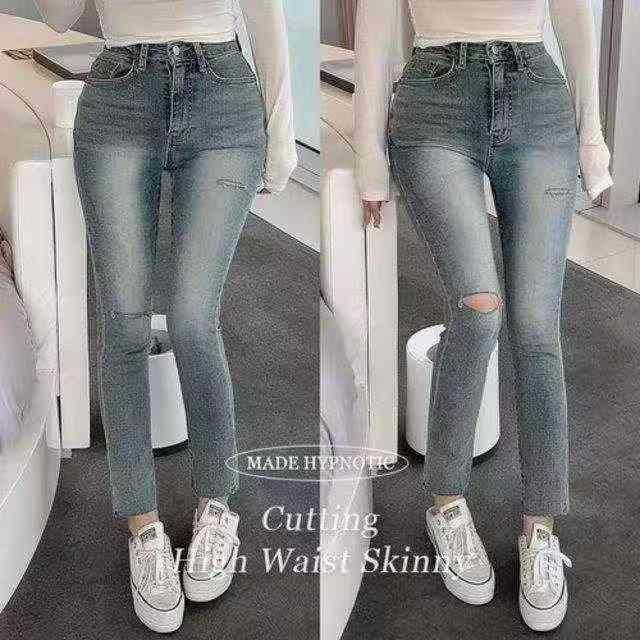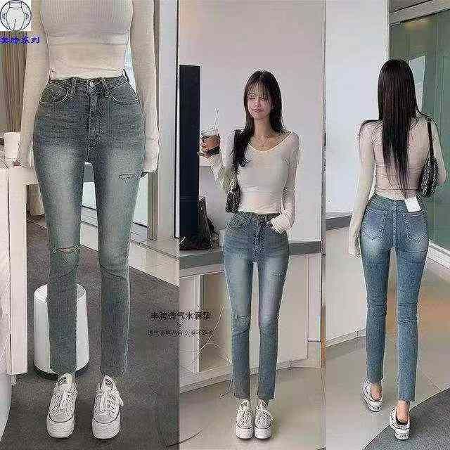春秋新款破洞设计款高弹力老爹哈伦牛仔裤,独立包装带腰卡,码数27-32码, 420件左右,全清8.9元超低价秒杀!分货加一!