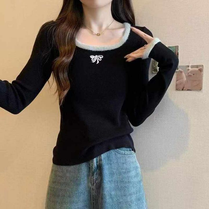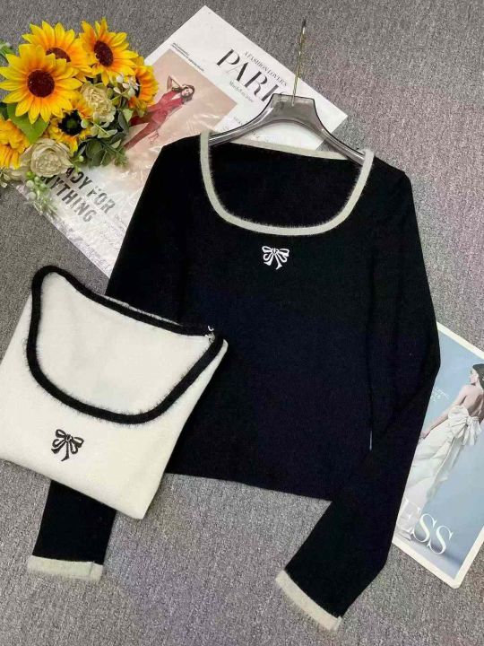 早秋新款小香风撞色刺绣减龄百搭拼接水貂毛设计款套头毛衣,独立包装,均码面料软糯舒适弹力大,400件左右,全清6.9元超低价秒杀!分货加一!