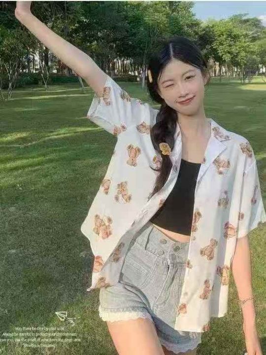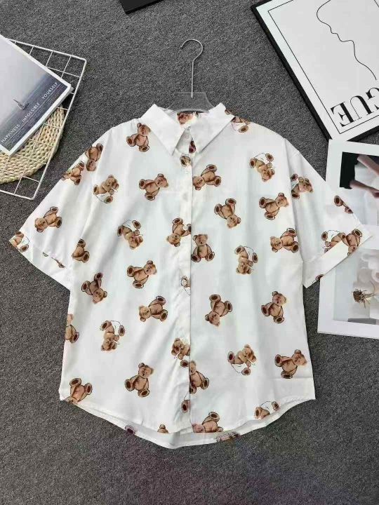 ☕️女装雪纺衬衫两个整款832件全清8.8元,分货9.9元,S到XXL码数,独立包装[庆祝][庆祝][庆祝]短袖衬衫女夏季新款港风POLO衬衣小熊仔印花小清新上衣