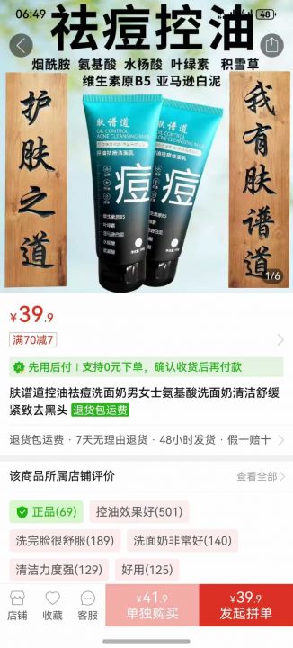 肤谱道控油祛痘洗面奶男女士氨基酸洗面奶清洁舒缓紧致去黑头,5000支
