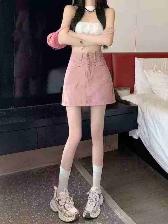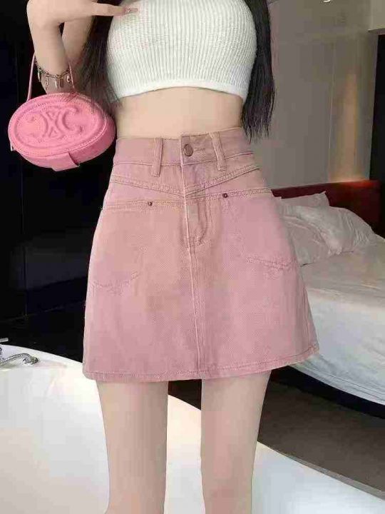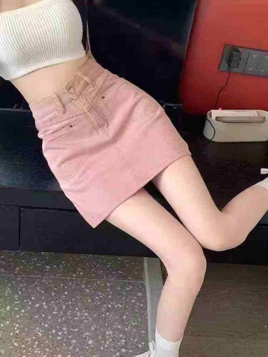 ☕️夏季粉色牛仔半身裙女夏高腰显瘦别致包臀A字短裙3...