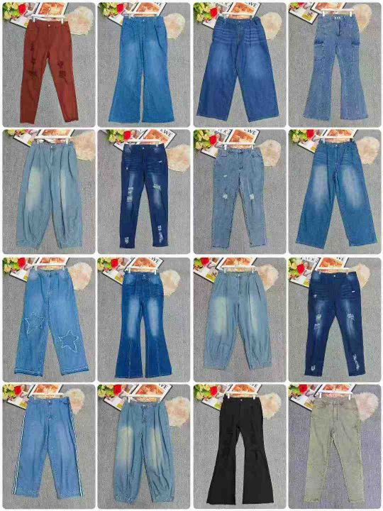7.8清工厂回收378条外贸热卖时尚工装宽松大版女士牛仔...