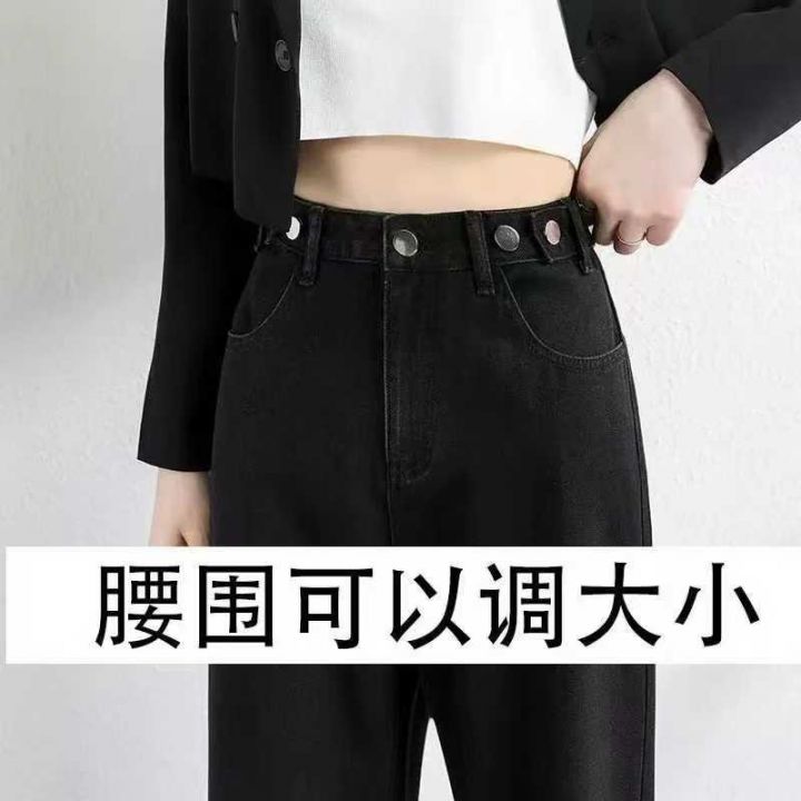 高腰牛仔直筒裤显瘦小个子加绒深蓝美式豹纹直筒烟管裤180件,独立包装带吊...
