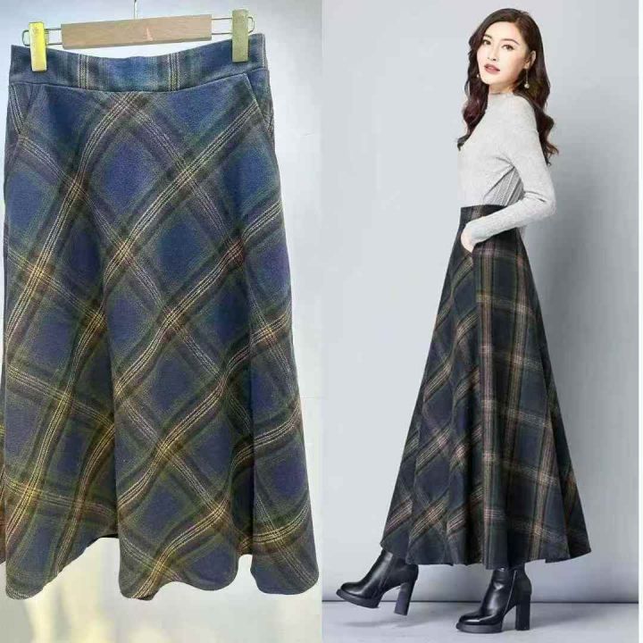 秋冬毛呢格子裙半身高腰a字裙半身长裙冬季裙,码数S-X...