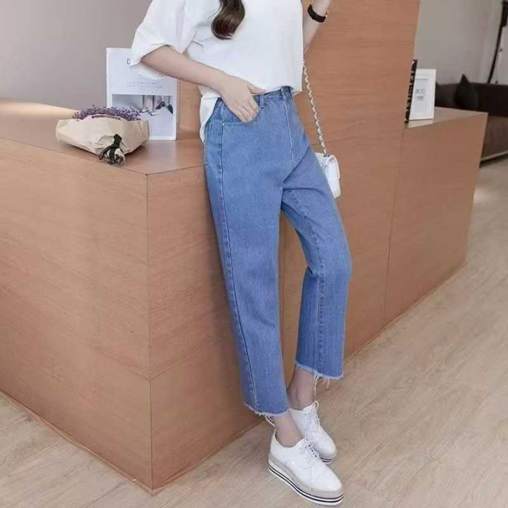 全清4.8 140件左右微瑕女装宽松毛边牛仔九分裤,整款单色,气孔有风痕,...