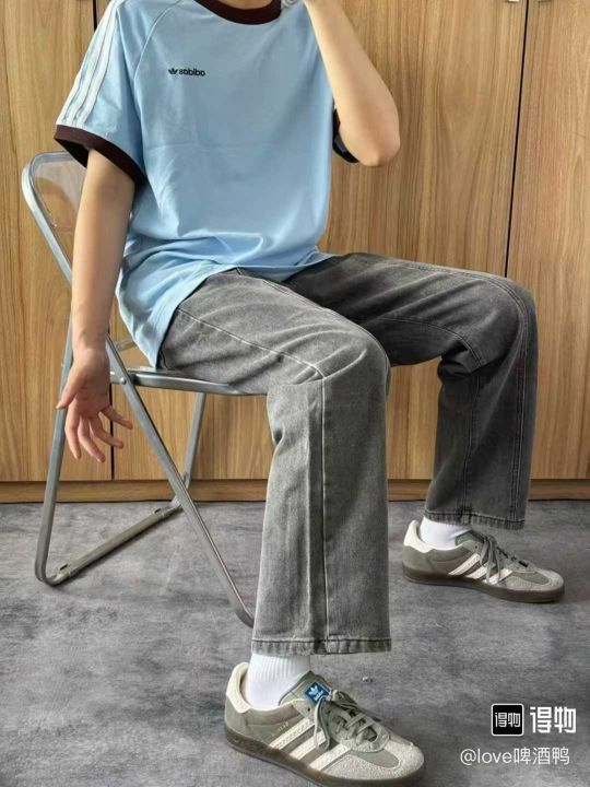 全清6.8分货+1秋冬季男女同款加绒斑马纹裤子直筒宽松百搭阔腿休闲裤拖地裤...
