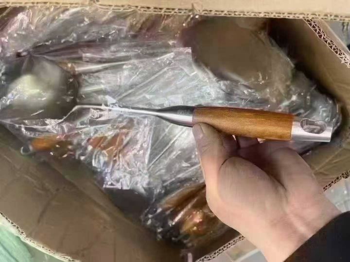 无磁双立人高端钢柄铲、勺,170克重,花梨木钏、勺180...