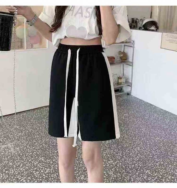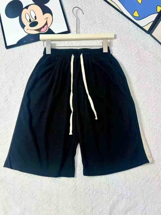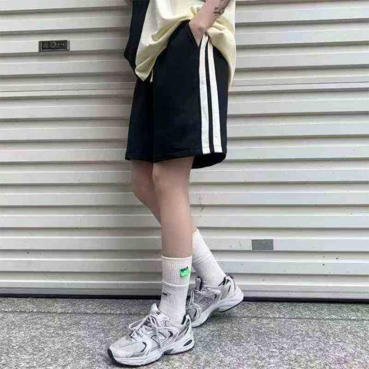 夏季美式复古重磅条纹运动裤潮牌宽松直筒休闲五分裤