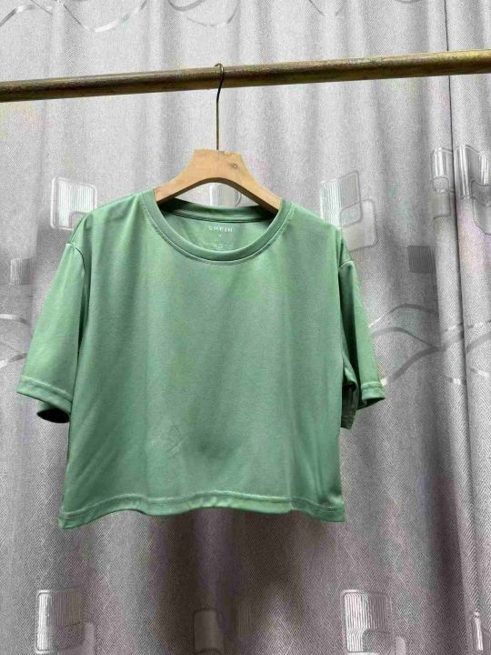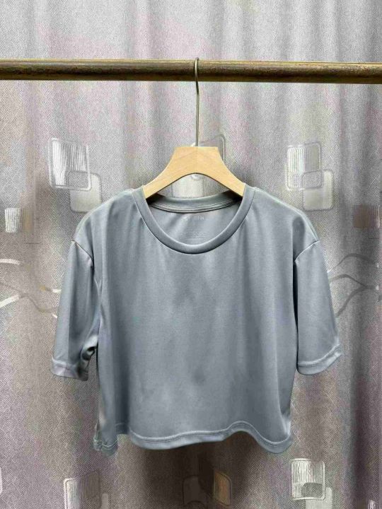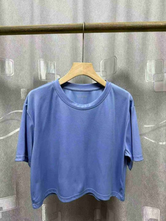 欧美运动短袖上衣女圆领短款T恤宽松跑步健身瑜伽透气服,包领条S -XL码,有包装、600件左右,全清2.99