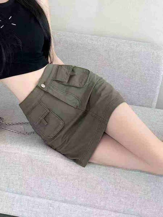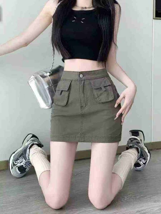 ☕️辣妹军绿色工装牛仔半身裙女美式短裙夏季A字包臀...