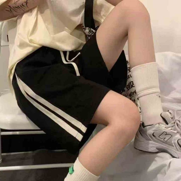 夏季美式复古重磅条纹运动裤潮牌宽松直筒休闲五分裤