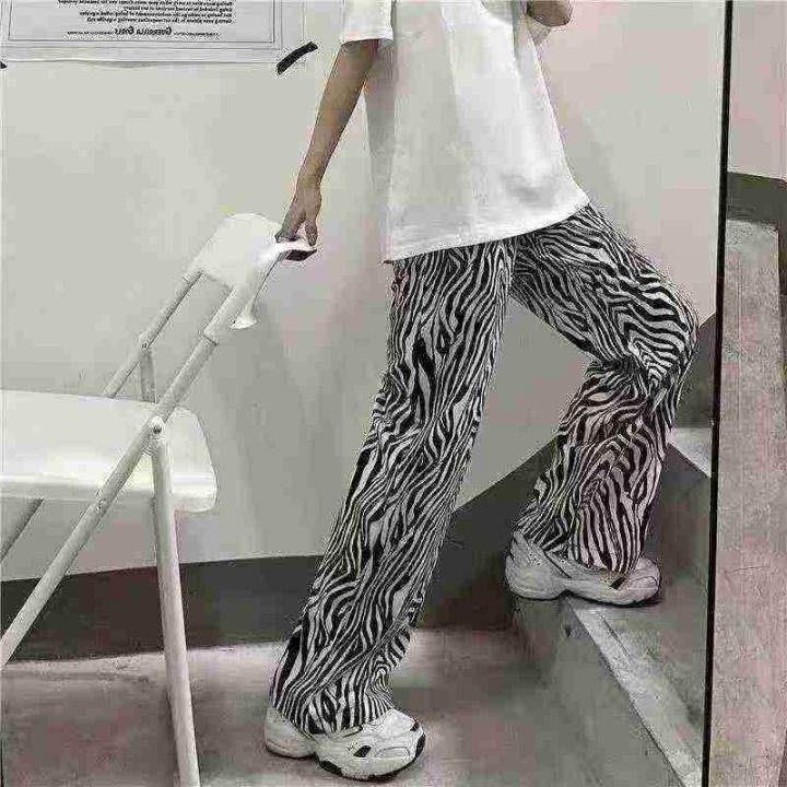 全清6.8分货+1秋冬季男女同款加绒斑马纹裤子直筒宽松...