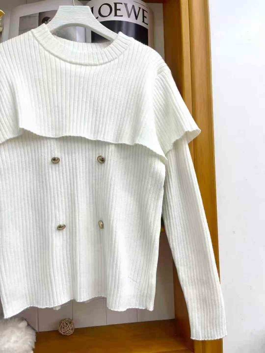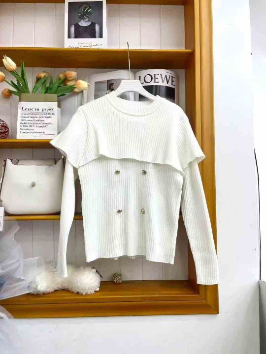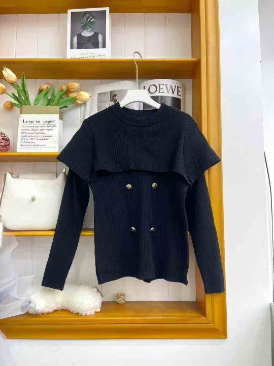 ① 高级感斗篷式粉色假两件针织上衣奶fufu慵懒风松弛...