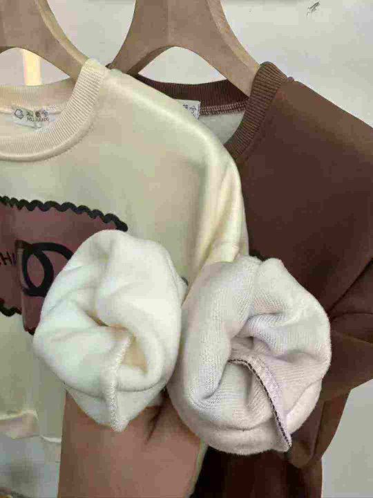 天猫在售款95件左右高品质秋冬款洋气时髦中大童加绒加厚卫衣,码数120-160,单款两色(棕色多)内里加超柔BB绒,独立包装加吊牌